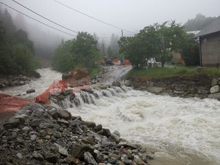 Situazione di rischio idrogeologico in zona Terme di Valdieri. Le continue e consistenti precipitazioni, insieme alla fusione della neve, hanno provocato l'innalzamento del livello del torrente Gesso e degli affluenti.
