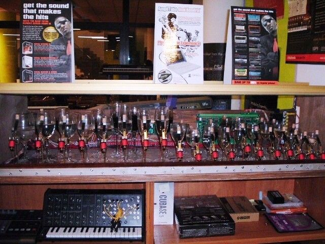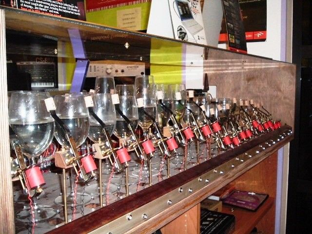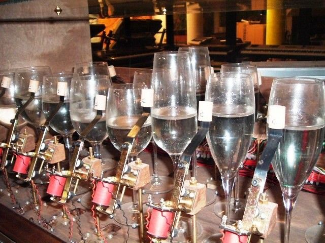 “Il tutto è iniziato quando il signor Merula, titolare del magazzino musicale di Roreto di Cherasco, mi ha commissionato la creazione di uno strumento musicale dove a suonare erano i bicchieri Bormioli invece delle classiche corde – spiega Franco Faia -. A quel punto mi sono messo alla ricerca dei bicchieri giusti e dopo qualche settimana sono riuscito a mettere insieme 32 bicchieri di 14 tipi diversi. Con un bicchiere si riescono a riprodurre due o tre note e con l’aggiunta della giusta quantità d’acqua sono riuscito a creare uno strumento che riproduce le note dal Do centrale al Sol acuto. Per evitare l’evaporazione dell’acqua – continua Faia – ho aggiunto un piccola parte di olio di vaselina, mentre per evidenziare i semitoni, come sulla tastiera musicale, ho aggiunto della rolla, colorante per legno in tinta noce. Il risultato ottenuto è uno strumento del tutto innovativo che si può collegare con interfaccia midi ad una tastiera o ad un personal computer, in maniera da riprodurre file musicali presenti su internet. Oltre al bicchierofono ho già anche creato il flautomatico, uno strumento realizzato con 49 tubi di plastica, degli impianti elettrici con dimensione da 16 a 40 millimetri di diametro e che funziona con lo stesso principio del bicchierofono. La nostra intenzione – conclude l’inventore - era di realizzare degli strumenti che emettessero un suono naturale sfruttando le più moderne tecnologie e utilizzando il principio degli strumenti musicali che suonavano con le schede perforate. Ci siamo riusciti”.