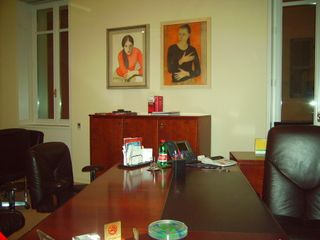 Salendo le scale si arriva ai piani superiori. L’atrio principale e lo scalone storico. Andando su si raggiungono uffici e sala riunioni. Arredamento e tecnologie ultra moderne in stanze illuminate da essenziali lampadari su tetti anticamente decorati. Più in là corridoi con vista sulle torri.