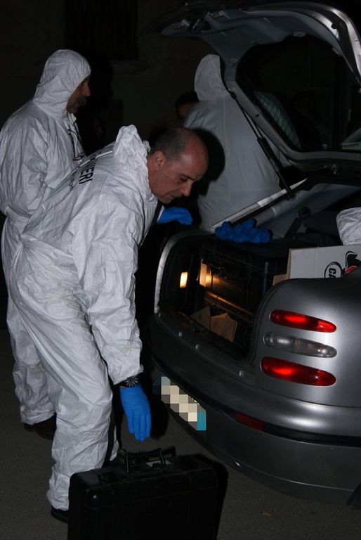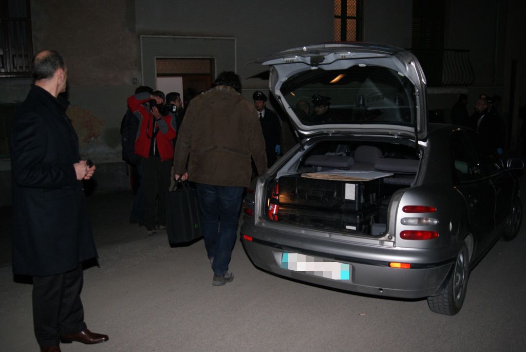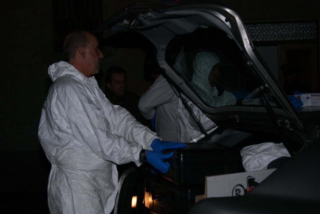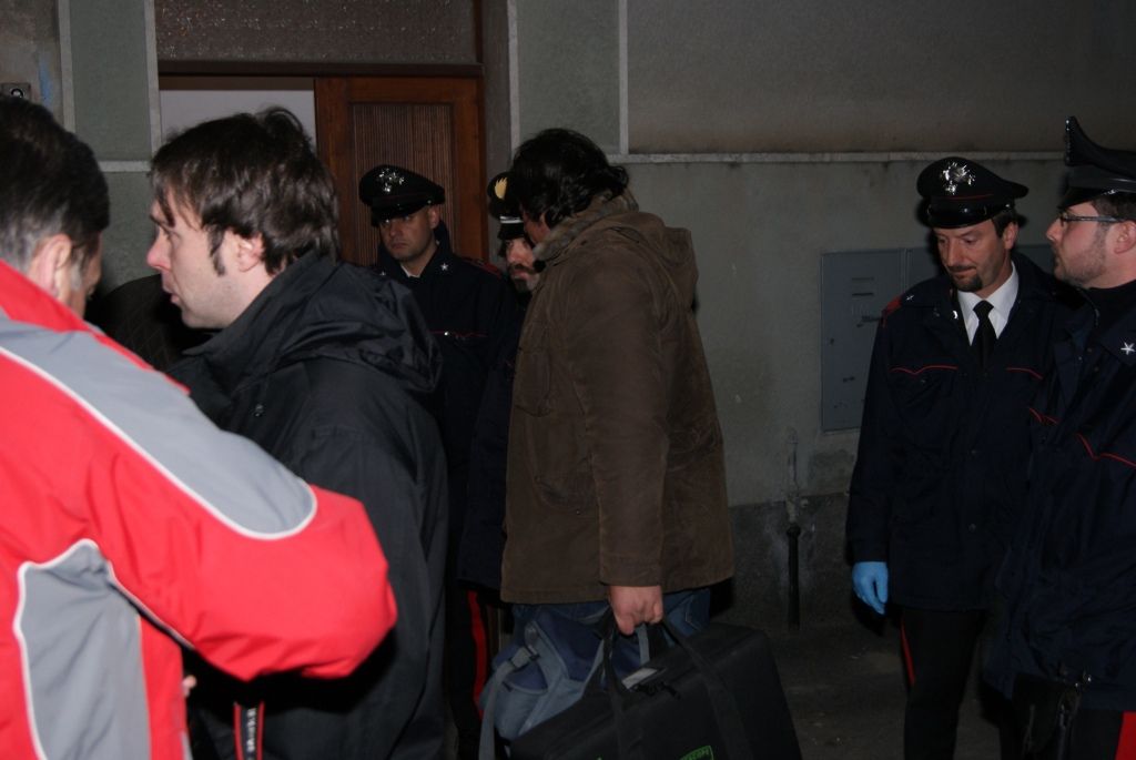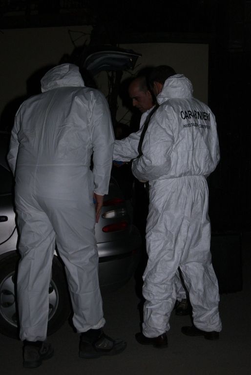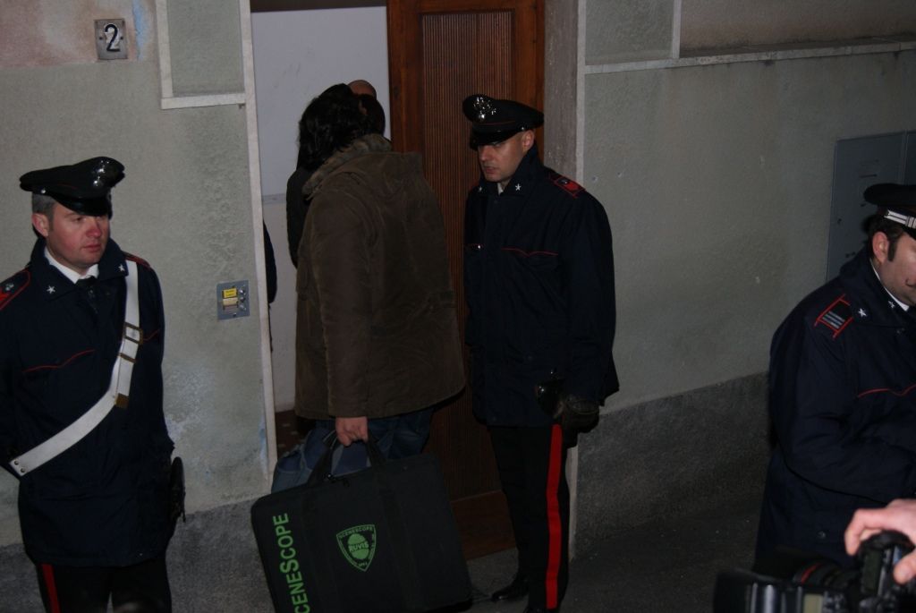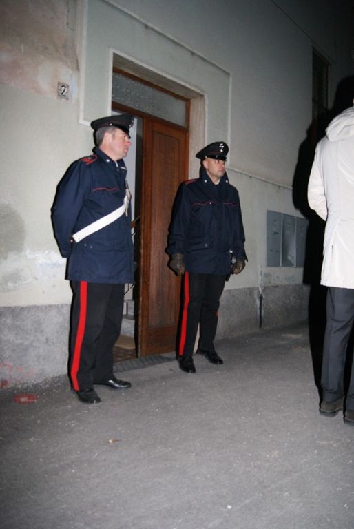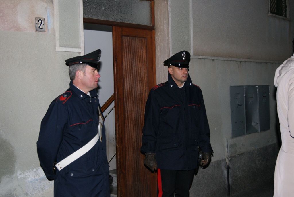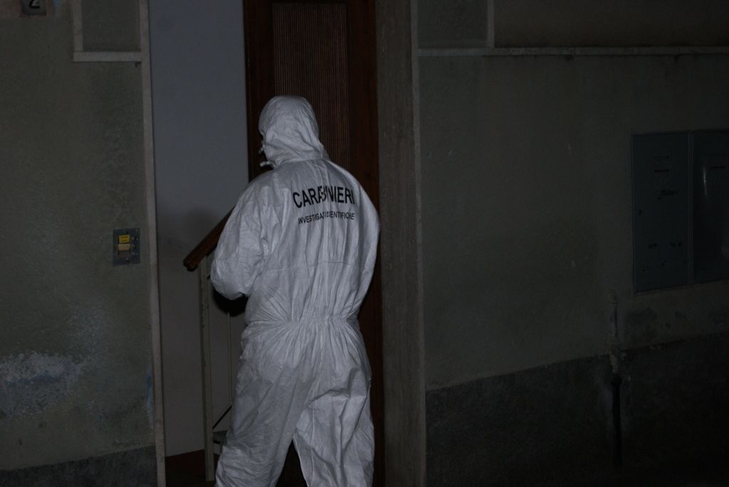 Gli uomini dei Carabinieri al lavoro di fronte all'abitazione della vittima nel fotoservizio © Francesco Ameglio