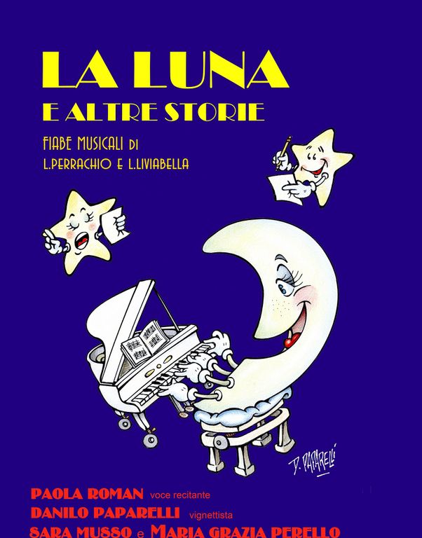 La luna e altre storie è uno spettacolo in cui le storie vengono narrate, illustrate e sonorizzate. Il racconto e le illustrazioni sono forme artistiche da sempre molto vicine al mondo dei bambini, concorrono ad attirarne l’attenzione, suggeriscono immagini, guidano e accompagnano gli spettatori nella storia, mentre la musica sottolinea i momenti salienti delle vicende. Sul palco l’attrice Paola Roman racconta le storie, interpretando le voci dei tanti personaggi che le animano, in alternanza alla musica. Proprio quando il racconto tace e la musica commenta con i suoni le azioni e le emozioni dei personaggi (al pianoforte Sara Musso e Maria Grazia Perello), ecco che il vignettista Danilo Paparelli si mette all’opera. I suoi disegni prendono forma sulla lavagna luminosa e, poco alla volta, sullo schermo appaiono le persone, gli animali e gli oggetti delle storie. C’era una volta un paese dove la notte era sempre buia e il cielo si stendeva sulla terra come un drappo nero … così inizia il racconto de “La luna e altre storie”.