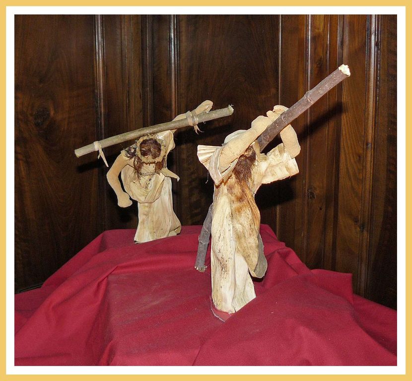 Dopo il successo di “Pasta, presepe e… fantasia” ritorna per il quarto anno, nella chiesa di Maddalene, la Via Crucis, che rimarrà aperta fino a domenica 1° maggio. Le 45 figure che la compongono si suddividono nelle 14 stazioni che rappresentano le ultime ore della passione di Gesù e la sua morte. Ad esse se ne aggiunge una quindicesima dove Gesù risorto appare a Maria di Magdala e dove Maria corre ad annunciare ai suoi fratelli che Gesù non è più morto. Il corpo di ogni figura è stato realizzato con polipan modellato sfregando su di esso cartavetro e colorato con terra refrattaria. I vestiti sono foglie di mais nel loro colore naturale, i capelli sono capelli delle pannocchie.