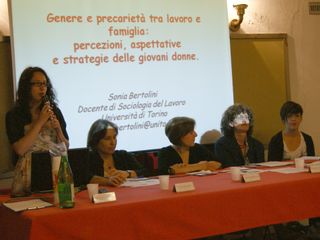 Sonia Bertolini ha concluso l’ntervento intitolato “Quando la flessibilità è donna”, affermando: “La nuova sfida del tempo dovrebbe essere quella di permettere alle lavoratrici atipiche di conciliare le tappe della vita privata (maternità, impegni familiari…) con quelle della vita lavorativa, non solo senza perdere il lavoro, ma anche senza essere declassate professionalmente, senza dover rinunciare a un percorso di lavoro ascendente. Occorrerebbe un’adeguata riforma del sistema delle politiche e delle tutele sociali del lavoro”. Gianna Beltramo, con il provocatorio contributo “Quando le donne sono il problema”, ha voluto mettere in rilievo il fatto che siano le donne cause del proprio male, asserendo che il cambiamento debba partire dal genere femminile affinché si attui quel cambiamento culturale tanto auspicato. Franca Giordano, invece, ha fatto emergere i motivi che hanno indotto le donne a scendere in piazza.