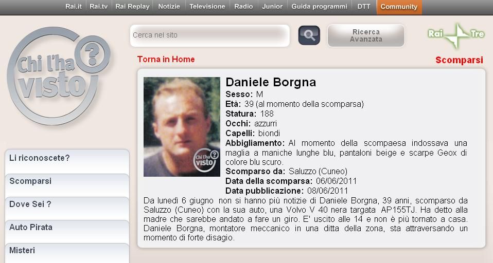Da due giorni si è allontanato da Saluzzo Daniele Borgna