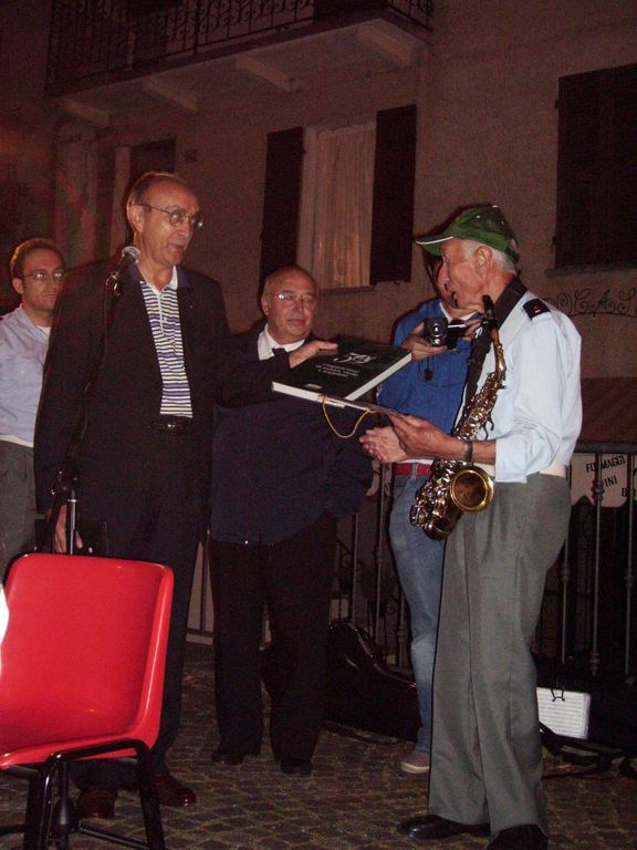 Nato a Ormea il 3 giugno 1921, Marco Pelazza è il musico ancora in attività più longevo del Piemonte. Suona il clarinetto nel corpo bandistico Alta Valle Tanaro ed è stata proprio la banda valtanarina a organizzargli una festa a sorpresa per il suo novantesimo compleanno a Ormea, sabato sera, in occasione del tradizionale appuntamento concertistico del Corpus Domini. Presenti anche Gianni Varvello, presidente provinciale dell’associazione nazionale Bande musicali e Giancarlo Bonardo, presidente della Banda musicale di Ceva.
