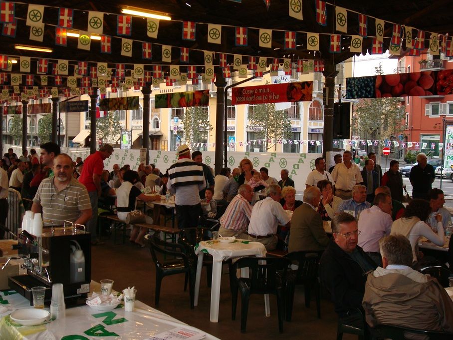 Intermezzo: ad ogni kermesse del Carroccio che si rispetti di solito si mangia e si beve ed anche sotto il padiglione di piazza Ellero non si è fatta eccezione: una sontuosa polentata, gratis per tutti, condita da salsiccia e tanto buon vino hanno fatto da antipasto alla serata.