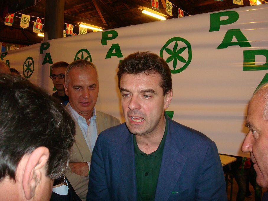 E' il momento di Calderoli. Il ministro sale sul palco in braghette e deve subito lottare con un microfono che fa le bizze: "L'unico microfono comunista lo hanno dato a me", ironizza. La folla, tra un boccone di polenta ed un sorso di vino, si scalda. E allora Calderoli attacca: "Stare al governo è difficile, stare quando c'è Berlusconi due volte di più". Aria di rottura? Macché: "Il cavaliere è sfigato. La prima volta che sta al governo vanno giù le Torri Gemelle, stavolta scoppia una crisi internazionale da paura...". E che cavoli, sfortunato davvero. Ma non di solo sfiga si tratta: il ministro delle Riforme punta il dito sul "traditore". Chi? Fini, naturalmente, "che è lì, presidente della Camera con i voti degli elettori ai quali ha voltato la faccia: ma secondo voi è uno di destra chi vuol dare il voto agli immigrati e concedere il matrimonio ai gay?". Parte l'applausone, una signora ha già le mani rosse a furia di batterle.