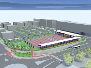 3) L’EDIFICIO BAR – EDICOLA/PUNTO INFORMAZIONI Al riparo della pensilina lungo via Einaudi sorge il duplice corpo edilizio del bar e dell’edicola/punto informazioni, saldati dalla terrazza panoramica soprastante.