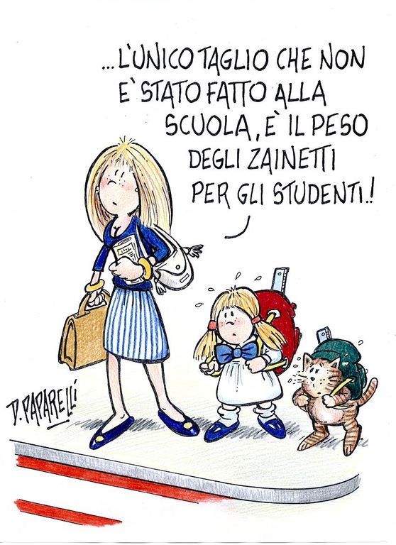 I quali, però, hanno una mole di libri di testo da portare a scuola che non è neanche minimamente comparabile con il nostro unico sussidiario di prima e seconda elementare. Poi, dopo che si erano passati gli esami per la terza (soppressi nel 1977), qualche libro in più c'era, ma non così tanti da costringere i poveri scolari di oggi a trascinarsi dietro addirittura un trolley. Così come il metodo d'insegnamento, tante cose sono cambiate, e sarebbe troppo lungo affrontare il discorso. Ma il batticuore del primo giorno, quello, resterà sempre lì, in ogni bambino o studente in attesa che si spalanchi il portone della sua scuola.