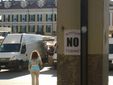 Piazza Galimberti e via Roma a Cuneo tappezzate di cartelli "Alpitour no Torino"