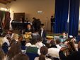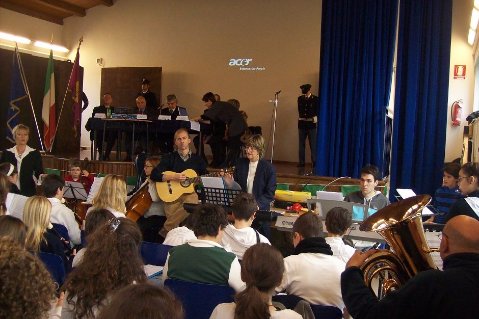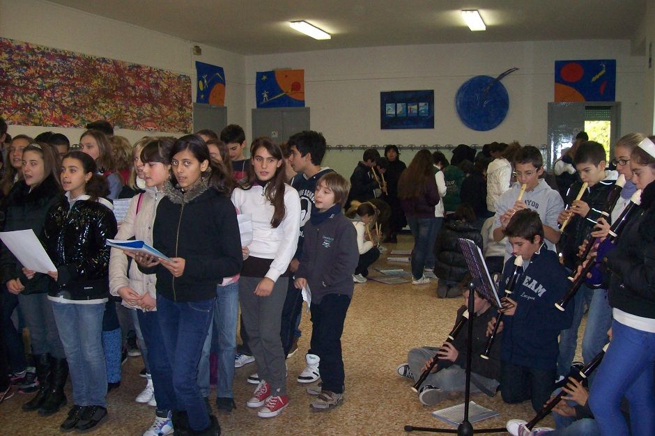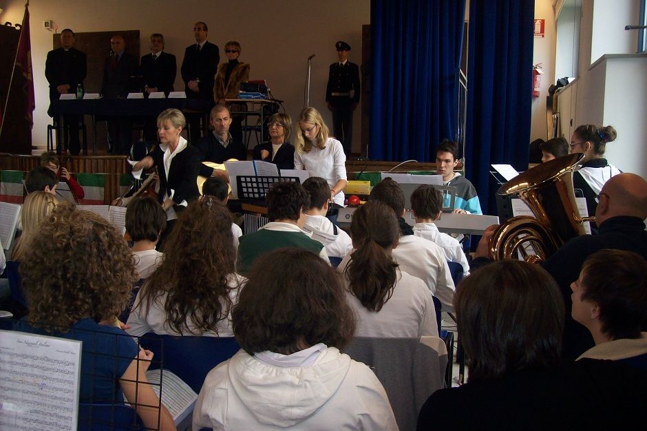 Suggestivo l’accompagnamento musicale dei ragazzi della scuola media, l’Inno d’Italia “ascoltato con piacere e per la prima volta nella sua versione integrale“ come confessa il Questore Palombi e il ricordo del grande Eroe nelle parole preparate dagli alunni.