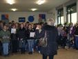 Il tricolore che questa mattina era di fianco alla porta di ingresso della scuola è stato tolto scoprendo la targa benedetta anche dal parroco di San Rocco don Giuseppe. Un momento di preghiera per consacrare il momento solenne e rendere giustizia a Giovanni Palatucci consegnando il suo nome e la sua storia alle generazioni future per l’eternità.