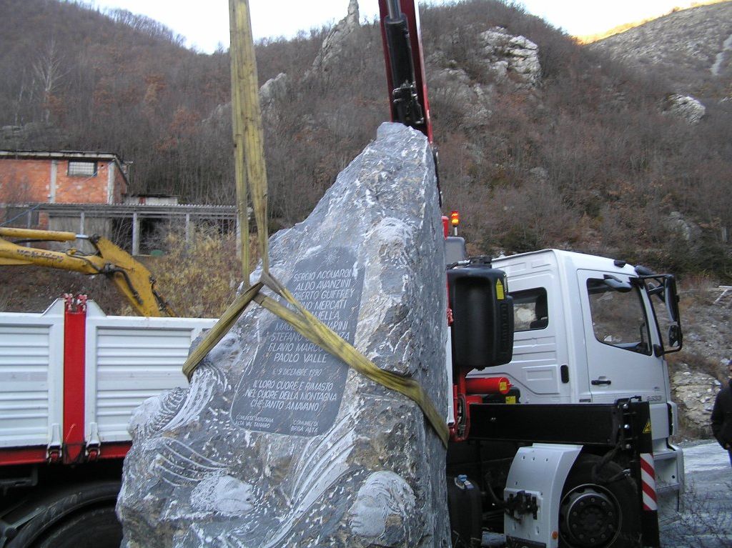 Nei giorni scorsi l’Amministrazione comunale di Briga Alta ha fatto posizionare all’ingresso della borgata Carnino un cippo commissionato due anni fa allo scultore rumeno Benone Olaru dalla Comunità montana dell’Alta Val Tanaro a ricordo delle vittime. Una scultura in marmo nero di Ormea su cui sta scritto, oltre ai nomi dei nove speleologi che persero la vita, “Il loro cuore è rimasto nel cuore della montagna che tanto amavano”. Il cippo verrà benedetto domenica alle 10.30. Subito dopo la messa in suffragio delle vittime.