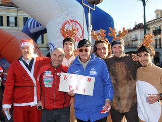 Una vigilia di Natale con invasione di Babbi. A Cuneo, infatti, erano 140 gli atleti simpaticamente travestiti con il tipico costume rosso che il 24 dicembre hanno percorso i quasi 7 km della gara organizzata dalla Cuneo Triathlon del presidente Davide Nerattini in collaborazione del Comune di Cuneo e l’Associazione Il Porticone.