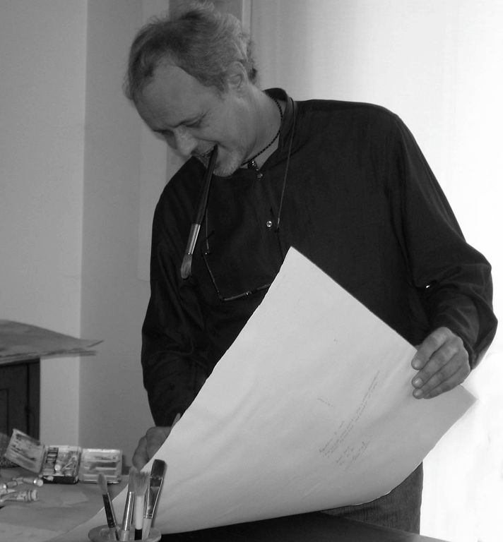 Gli esordi sono faticosi. Sfidare il caldo, il freddo, la neve; in piedi davanti al cavalletto da campagna, assieme ai pittori dell'epoca, paesaggisti “en plen aire”, cercando di rubare un po' di mestiere, appesantendo tele e tavole di materia ribelle che non ne voleva sapere di coordinarsi, di assumere proporzioni e cromie simili al vero. Perché dal vero si dipingeva: gli ultimi scorci di un mondo contadino che andava scomparendo. Anni nostalgici, ma che hanno formato ed affinato la tecnica, il taglio del soggetto, la cromia... Si doveva lavorare, contribuire al mantenimento della famiglia, un bimbo piccolo. In fabbrica tutta la settimana, poi il sabato e la domenica a correr dietro a quei maestri, un po' burberi e solitamente restii a dar consigli, aiuto. Rubare! Solo così potevi portare a casa qualche “dritta”, qualche segreto e poi... ti rimanevano le sere e le notti settimanali, a tentar di ridisegnare di ricolorare. La piccola mansarda dove scorreva la vita quotidiana non bastava più a contenere tele, colori, solventi. La puzza era insopportabile, il bimbo, tutto colorato. La compagna subiva, sopportava, ma... Soldi per uno studio non ce n'erano. Per questi motivi pratici e solo per questo, Claudio si decide a provare l'acquarello. Praticità. Niente puzze, niente solventi, possibilità di archiviare carte anziché tele risparmiando spazio. La rivelazione. Grazie a quell'espediente pratico, Claudio scopre la magia di quella tecnica, ma soprattutto si rende conto di avere più voglia di raccontare che dipingere. L'acquarello gli permette di fondere le due cose. La voglia di racconto e la possibilità pratica di quella tecnica, in cui è necessario esser veloci e spontanei, cambia radicalmente il suo approccio alla pittura. Abbandona i pittori “en plen air”, la pittura dal vero e si immerge in un percorso più intimo. Alcuni viaggi nel bacino mediterraneo gli aprono scenari nuovi, le letteratura d'avventura e la scoperta delle “Mille e una notte” lo portano in un mondo immaginato, sognato, agognato. Affascinato dalla narrativa, frequenta seminari di disegno e sceneggiatura del fumetto e si avvicina all'editoria con alcune pubblicazioni di copertine e di illustrazioni. I viaggi mediterranei lo “traghettano idealmente nel grande mare nostrum”, nel mondo incantato del sogno e dell'avventura disegnata. Diventa un sognatore. Iniziano i viaggi “fantastici”, incontra nel suo mondo disegnato personaggi come il comandante, il nostromo. Insegue Morgana, personaggio ricorrente del suo lavoro e musa ispiratrice di un incontro mai avvenuto, ma continuamente inseguito. Le prime mostre gli fanno conoscere il suo pubblico. Si instaura un rapporto di complicità con alcuni suoi sostenitori. Alcuni si chiedono chi siano il comandante, il nostromo, altri domandano notizie di Morgana... Ecco, il pubblico. La vera ed unica forza di Claudio. Il pubblico che lo sostiene, che lo stimola. Agli albori del nuovo millennio, abbandona l'attività di cui vive, per dedicarsi interamente alla pittura ed al racconto. Da qualche tempo, non ama più riconoscersi nella figura classica del pittore e preferisce definirsi un cantastorie. Le mostre personali e collettive di questi anni, sono numerose. Sue opere si trovano in collezioni private e pubbliche in Italia ed all'estero. Un critico s'è spinto fino ad idenficarlo come un personaggio del suo mondo figurato. Di ciò s'è inorgoglito non poco.