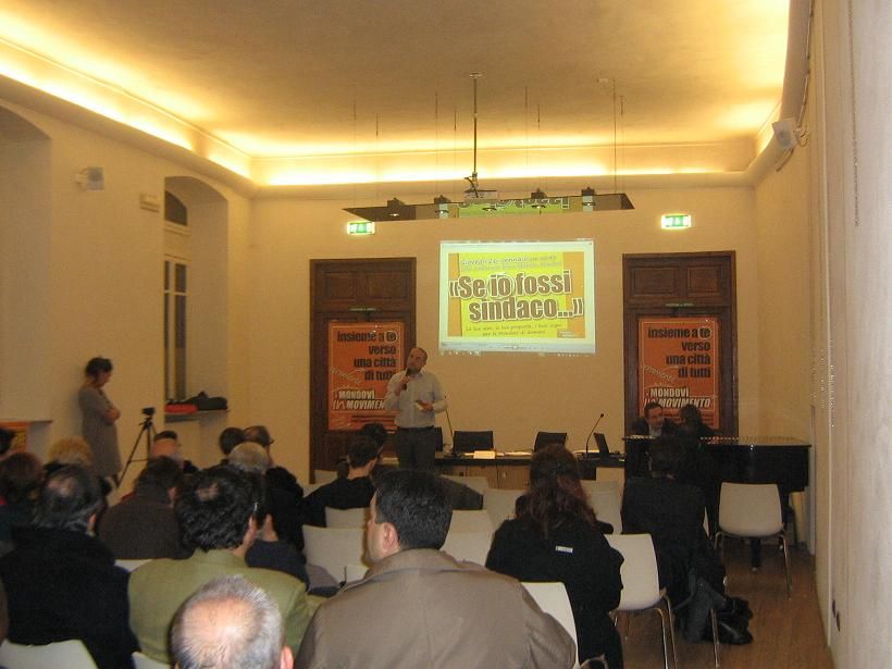 Si resta in piedi, non si trova posto. Importante affluenza di simpatizzanti, di curiosi, di cittadini: la serata organizzata dalla lista civica “Mondovì in Movimento” si può tranquillamente definire un successo. La gente sente la voglia di partecipare, di proporre, di dire la propria, di farsi sentire. La breve introduzione parla di fatti, di idee, di iniziative.