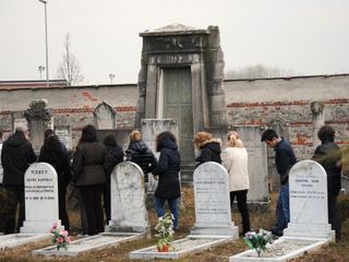 Poi, tutti al cimitero ebraico, grazie anche all’aiuto di un paio di bus messi a disposizione, una preghiera all’esterno, la deposizione di una corona d’alloro alla lapide che reca incisi i nomi dei 29 deportati e uccisi, l’attimo di raccoglimento del sindaco Allemano e poi la visita alle tombe.