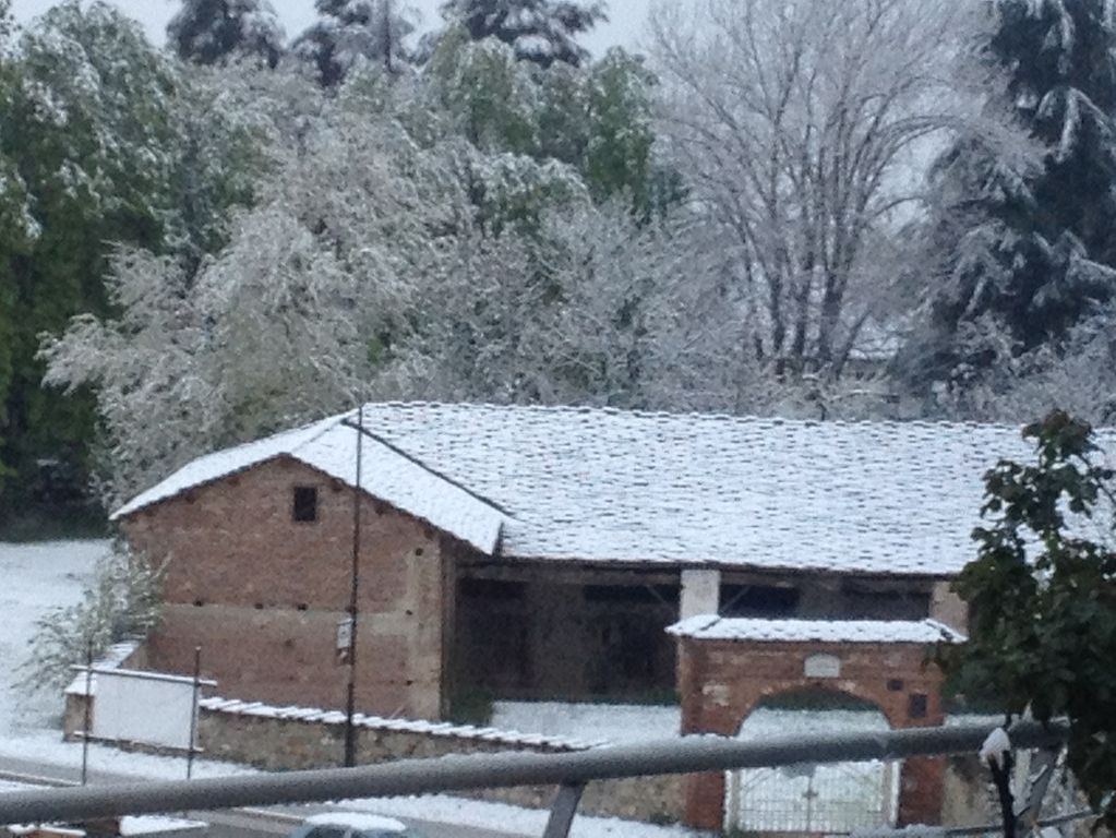 Pochi centimetri nel capoluogo. Il peso del manto ha spezzato qualche albero