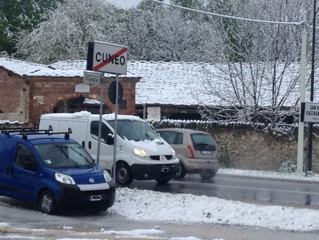 Dopo la calura estiva a Cuneo è tornata la neve: qualche disagio sulle strade
