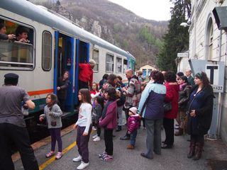 Musica, bevande, cibo e tanti bimbi: tutto sul treno. Insieme lo spettacolo con sputafuoco. L’iniziativa è dei Comitati locali che difendono la Ceva-Ormea, una delle dodici linee regionali minori a rischio soppressione, e si è svolta ieri pomeriggio. Appuntamento alle 18.43 sul primo binario tronco della stazione di Ceva, poi via verso Ormea in carrozza, fermata dopo fermata, sempre più zeppa.