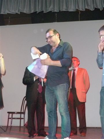 Terzo premio a Vladimiro Bertinetti del sodalizio di Savigliano, salito sul palcoscenico con la canzone “Vieni via con me “ di Paolo Conte, accompagnato al contrabbasso da Alberto Palumbo.