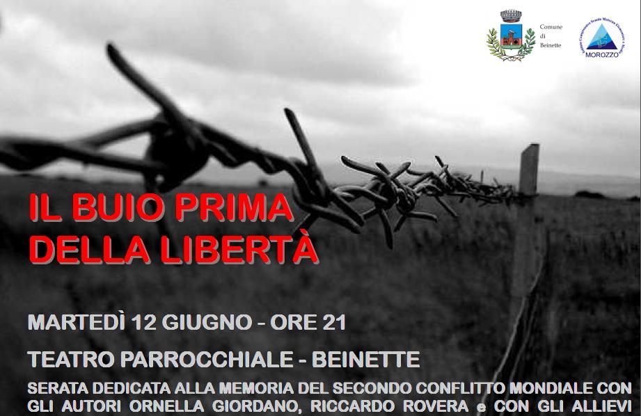 Spettacolo interamente preparato e allestito dagli alunni delle Medie dell'Istituto Comprensivo di Morozzo. Martedì 12 giugno (ore 21 nella parrocchiale di Beinette) si replica l'iniziativa del 10 marzo, data in cui è stato presentato la prima volta, nell'ambito del Progetto 150 anni dell'Unità d'Italia, rivolta alle classiterze medie della Comunità Montana delle Alpi del Mare. Si tratta di una rielaborazione e ricerca storica sui contenuti delle poesie di Ornella Giordano e del video di Riccardo Rovera. I ragazzi sono protagonisti della regia, delle letture, della proiezione di immagini, dell'esecuzione di canti e musiche inerenti il tema. Visto il successo della prima rappresentazione, pubblicato sul periodico dell'A.N.P.I. "Nuova Primavera", si è deciso, in collaborazione con il Comune, di valorizzare l'impegno e la testimonianza dei ragazzi, replicando lo spettacolo, riproponendolo al pubblico in orario serale.