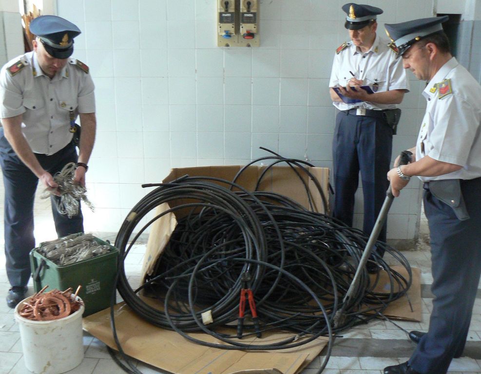 Quattro giovani sorpresi a separare il rame dal rivestimento esterno. Ne avevano ammassato per circa 2 quintali