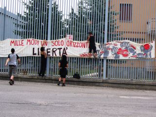 No tav davanti al carcere di Cuneo dove è rinchiuso Maurizio Ferrari