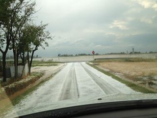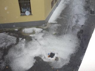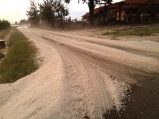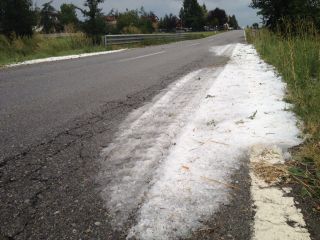 In qualche tratto la grandine ha raggiungo lo spessore di una quindicina di centimetri