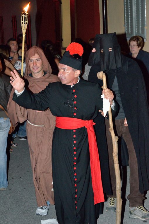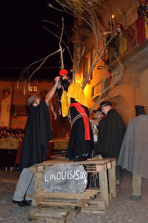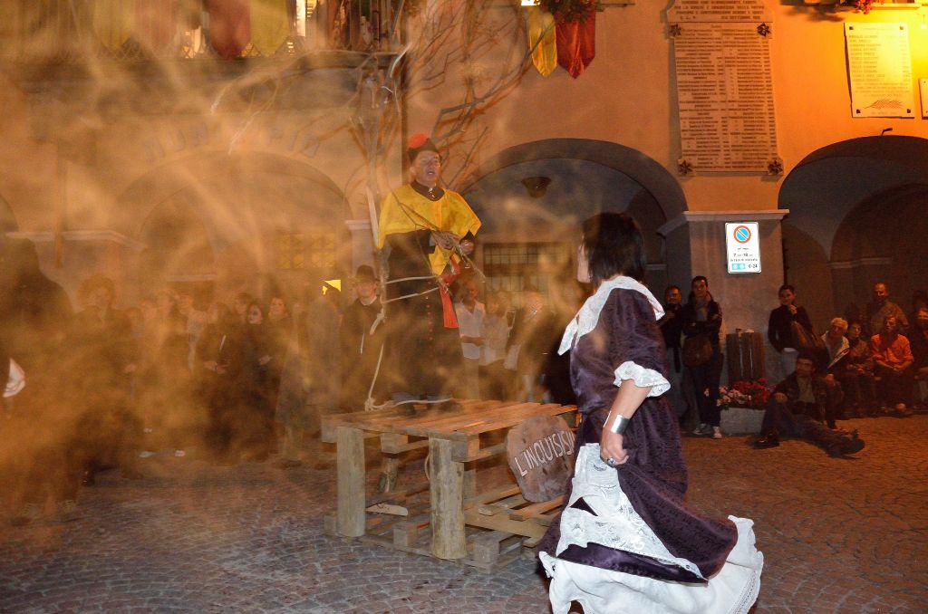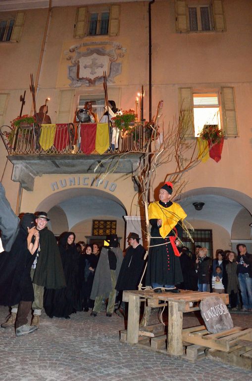 Nei cortili più caratteristici sono state proposte scene ispirate a fiabe e racconti mentre la serata è culminata con la cattura, il processo e la messa al rogo della masca del “pescheret”. Non è mancata la musica occitana e l’esordio del “Bal do Sabre” che ha riproposto con le danze degli spadonari preziose testimonianze culturali legate ad antichissimi riti solari che la tradizione ha saputo portare fino ai giorni nostri. Pur trattandosi di danza armata, la spada non viene usata per simulare figure di combattimento, bensì per legare in una catena o in un cerchio, le evoluzioni dei dodici danzatori e del buffone.