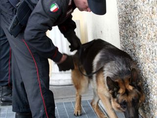 Carabinieri e unità cinofile davanti alle scuole albesi