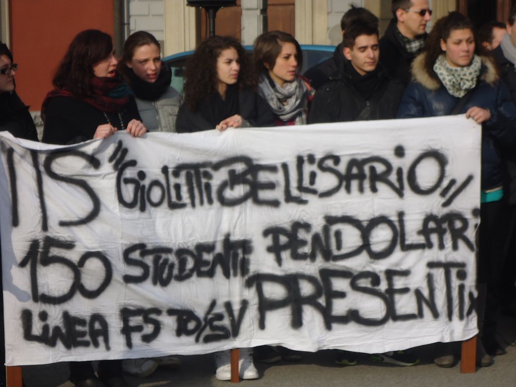 Di fronte alla stazione di Mondovì si sono riuniti studenti e lavoratori pendolari insieme con un nutrito gruppo di amministratori locali. La situazione dei trasporti su rotaia a livello locale e nazionale si sa, non è delle migliori. Sono numerose le critiche e le lamentele sull'inefficenza dei treni, i ritardi, lo stato dei convogli. La goccia che ha fatto traboccare il vaso nel territorio piemontese, dopo la dismissione di varie linee, tra cui la Ceva-Ormea e la Cuneo-Mondovì, sono stati i cambi di orario dei treni regionali e interregionali.