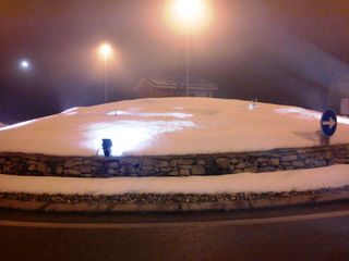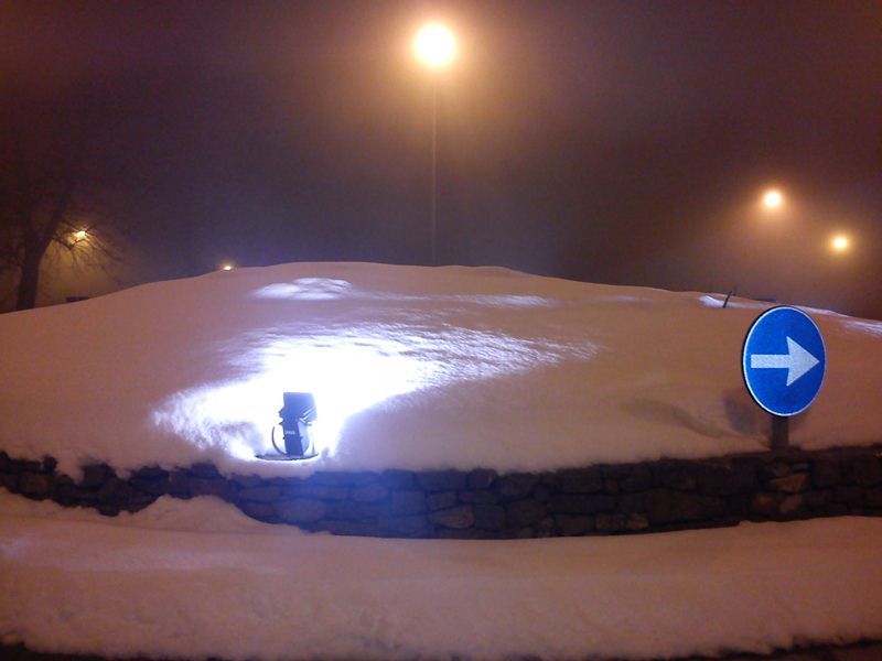 A Priero non sono affatto rare le nevicate copiose. Quella recente, del 23 gennaio scorso, ha di certo portato un abbondante manto bianco, visibile nella documentazione fotografica che correda questo articolo. Quel che si si può vedere è l'azione decongelante di 5 potenti fari che di notte illuminano la circolazione rotatoria sulla Strada Provinciale 430, all'ingresso del paese arrivando da Ceva. Non è certo così usuale omaggiare la manna bianca che scende dal cielo, per un centro che montano non è.