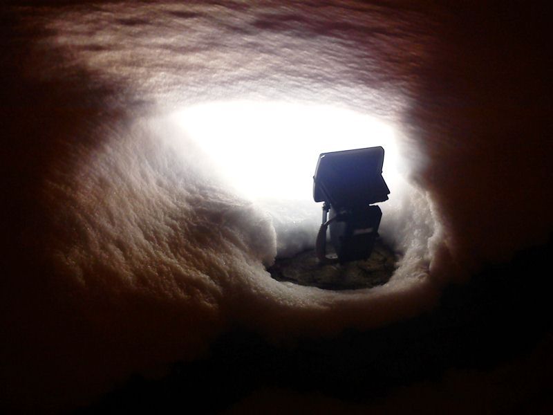 Sta di fatto che, la neve ritirandosi. per il gran calore, attorno alle cinque potenti sorgenti luminose si è generata una bella zona di rispetto.