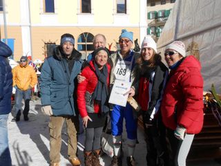 Poi, la sera, in albergo, con gli amici a festeggiare la splendida giornata. L'entusiasmo è contagioso, si sa, per cui si fanno già progetti per l'anno prossimo: toccherà noleggiare un pullman da Cuneo, perchè ora anche gli accompagnatori vorranno partecipare alla Marcialonga Story, si vorrà ingrandire il gruppo...ma questa è un'altra storia, che vi racconterò nel 2014.