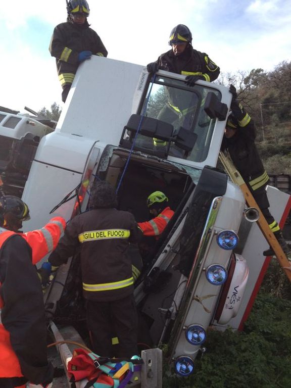 Una decina in tutto gli animali morti e 40 quelli ancora vivi. Il conducente del mezzo (un uomo di Tortona, F.B. di 50 anni) è stato estratto, non senza difficoltà dalla cabina dell’autoarticolato