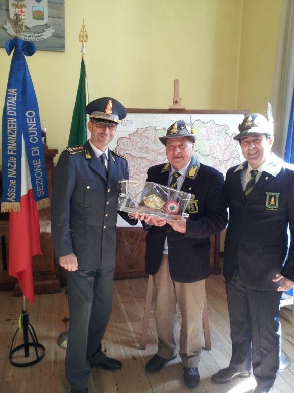 Il militare ha ricevuto dal Comandante Provinciale della Guardia di Finanza di Cuneo, Colonnello Francesco de Angelis, accompagnato dal Presidente dell’ANFI della Sezione di Cuneo e da alcuni militari in rappresentanza delle Fiamme Gialle della Provincia, i più sentiti e affettuosi Auguri di buon compleanno.