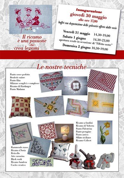 “Aghi, fili e… fantasia”: l’appuntamento atteso con la mostra di ricami, quest’anno alla sua quinta edizione, si apre giovedì 30 maggio, con il taglio del nastro alle 17,30, all’antico palazzo comunale e sarà visitabile fino al 2 giugno.