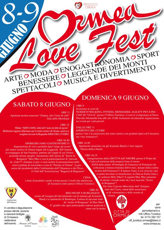 L'8 e 9 giugno 2013 nel cuore di Ormea (è proprio il caso di dirlo) due giornate dedicate al sentimento più alto.