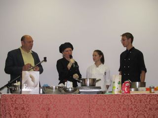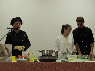 Letteralmente presa d’assalto domenica pomeriggio la “Grande Libreria”, promossa dalla libreria Capo Horn, che ha offerto una grandissima selezione di libri del settore enogastronomico e legati al territorio. Grandi applausi e risate con la serata dedicata al cabaret con Franco Rossi e Viviana Porro, la signora Ferrero, che hanno offerto momenti di grande spettacolo al pubblico cha gremito il teatro la sera del sabato. Un viaggio ironico e simpatico fra curiosità, musica e storia della cucina italiana. Divagazioni ispirate al volume Parlami d’amore ragù di Rocco Moliterni, introdotto dal giornalista Claudio Porchia e concluso con una degustazione di fritti di “Gigetta”, la cucina viaggiante (progetto di ristorazione di alta qualità a domicilio) di Marina Ramasso, chef del ristorante Paluch di Baldissero Torinese.
