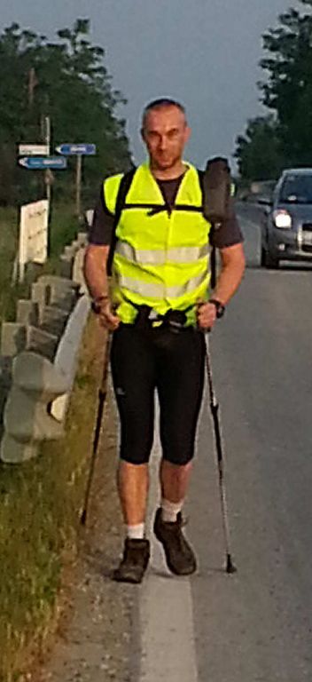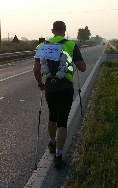 Partito da Revello, per la precisione dalla Palestra “Tempio del Fitness” di cui è titolare con la moglie Elisa Garciel alle 4.21, il dottore in scienze motorie Davide Bertinetto ha raggiunto Saluzzo (percorsi 10 km) che era ormai giorno e passando in centro è arrivato all'imbocco della statale per Savigliano, affollata dai primi vacanzieri del weekend.