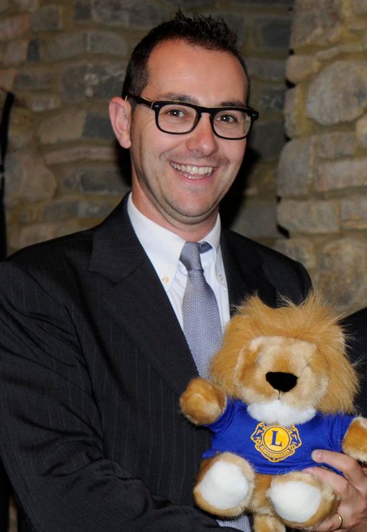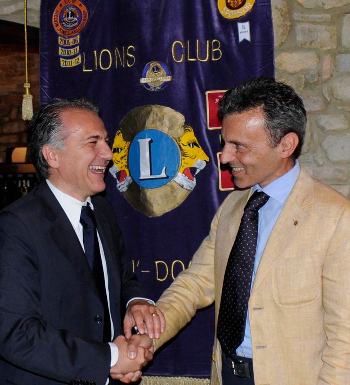 Quindi è seguita la consegna “personalizzata” a tutti i soci, della stampa litografata e di un dono particolare a Stefano Veglia, un “leoncino”, omaggio del Club a lui ed alla signora Elena, per la nascita del loro primo figlio, Filippo. Poi lo scambio del distintivo di presidente, da Daniele Robaldo al prossimo presidente, Ivano Dho, eletto nello scorso mese di aprile. Ivano Dho, ingegnere, di Mondovì è titolare della “Hobby Caravan Motor” azienda specializzata nella vendita e noleggio di camper, lungo la statale fra Mondovì e Santuario di Vicoforte.