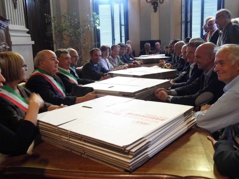 Alba non si arrende e continua la sua sfida contro il tempo per salvare il tribunale. Oggi circa cinquanta sindaci, capeggiati da Maurizio Marello - sindaco di Alba - e Bruna Sibille - sindaco di Bra - hanno incontrato il vicario del prefetto di Cuneo Pasquale Aversa per rassegnare le proprie dimissioni. Un gesto simbolico, annunciato dopo il presidio di mercoledì davanti al palazzo di giustizia, per dire ancora una volta no all’accorpamento con il tribunale di Asti. I primi cittadini si sono spogliati della fascia tricolore consegnandola al prefetto e a sorpresa hanno portato con sé anche i cartoni che serviranno a trasportare i fascicoli dal tribunale di Alba a quello di Asti, lasciandoli sul tavolo della prefettura. Al termine dell’incontro a porte chiuse, Aversa ha assicurato: “Ci faremo portavoce delle istanze avanzate dai sindaci inviando oggi una relazione al Governo”.