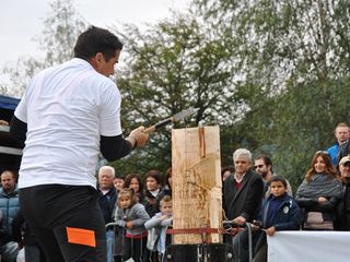 Partecipata (per se molto meno del solito, stante il perdurare degli alpeggi) la mostra mercato del bestiame bovino, ovino, caprino ed equino sul Lungopo, apprezzatissimi – dai più piccini – sia la “giostra degli asinelli” curata dell’Associazione Asinari del Monviso che la performance del Clown Bistecca, seguita da un tifo da stadio la gara degli atleti del Sthil Timbersport che si sono sfidati nel taglio della legna, ammirati con curiosità i “martellatori” di falci e falcioli e le piroette degli sbandieratori di Borgo San Martino di Saluzzo, affollata di pubblico la dimostrazione di volo di rapaci, quali il gufo reale europeo e turco, il barbagianni, il falco di Harris e l’avvoltoio, buoni affari anche per l’elicottero che dal piazzale dell’Acqua Eva portava chiunque lo desiderasse a vedere la Valle Po dall’alto.