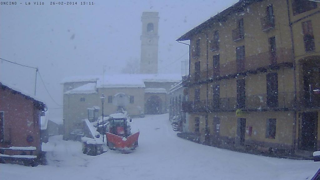Nevica intensamente su tutta l'Alta Valle Po. Nessun disagio per il traffico, ma spazzaneve in azione