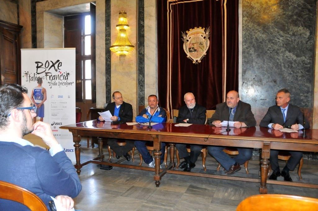 Si è svolta ieri pomeriggio nel Salone d’Onore di Palazzo municipale, alla presenza di Alberto Brasca (Presidente FPI), Luca Bacherotti (AD di ASICS Italia), Valter Fantino (Assessore allo Sport del Comune di Cuneo), Maurizio Stecca (Medaglia d’Oro Olimpica a Los Angeles 1984 e membro dello Staff Tecnico Italia Boxing) e Gianni Di Leo (Presidente del CR FPI Piemonte-Valle D’Aosta), la conferenza stampa di presentazione di "BOXE ITALIA vs FRANCIA - sfida tricolore", evento che si svolgerà a Cuneo sabato 5 aprile.Gli incontri si svolgeranno sul ring del Palazzetto Sport Area di Cuneo (in via Mereu 28 - Località Borgo San Giuseppe - Cuneo) e verranno trasmessi in diretta streaming a partire dalle ore 18 sul portale di Raisport (www.raisport.rai.it) ed in leggera differita il 5 aprile p.v. su RaiSport 1 dalle ore 22.35 alle ore 24.30. L’accesso al Palazzetto Sport Area sarà gratuito.L’organizzazione di questo match, che ha il patrocinio del Comune di Cuneo, è stata curata dalla FPI, dal CR FPI Piemonte-Valle D’Aosta, dalla Boxe Cuneo e ASICS, il main sponsor tecnico della Federazione Pugilistica Italiana.