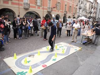 Ed ecco che la strada, fino a poco prima dominio delle autovetture, si trasformava. Sul selciato prendevano rapida forma spazi espositivi di opere di giovani artisti; un angolo per le acrobazie dei ragazzi/e della Scuola di Circo “Fuma che nduma”; spazi per lezioni di pattini roller; esibizioni di Capoeria, hip hop, break dance evari tipi di danza a cura di associazioni culturali e scuole di formazione; dimostrazioni di parkour gestite dalWSF Collective di Cuneo; dimostrazioni della compagnia teatrale giovanile Oikos Teatro; performance dimusica dal vivo dei musicisti del Conservatorio di Musica “G. F. Ghedini” di Cuneo; lezioni di prontosoccorso da parte della Croce Rossa Italiana e un punto informativo dedicato su alcol e guida, dove sonostati distribuiti etilotest monouso e con la partecipazione di Contralco data l’opportunità di sperimentareuna simulazione della guida in stato di ebbrezza.Gli eventi, pensati e organizzati direttamente dai giovani del progetto GIOCS, hanno presto richiamato, inuna via Roma completamente dedicata ai pedoni, gruppi sempre più folti di cittadini che sono stati prestocoinvolti dall’entusiasmo dei giovani, assistendo con interesse alle varie proposte, per poi concedersi unapausa ristoratrice in uno dei dehor che si erano impossessati della strada, godendo dell’accompagnamentodi giovani musicisti.