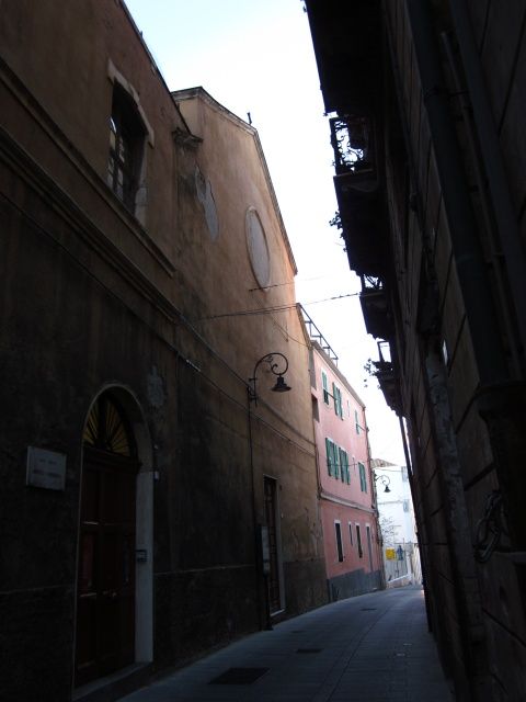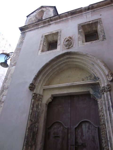 La chiesa fu edificata nel XVI sec. in stile gotico-aragonese. All'interno presenta un'unica navata con volte a crociera e cappelle laterali. Adiacente vi è un ex convento, che oggi ospita un asilo e una scuola elementare. L'edificio sorge sopra tracce di antiche fortificazioni pisane, come si evince dalla torretta inglobata nella costruzione della sagrestia. A questo proposito, dalla vicina piazzetta Mundula si scorge il retro dell'edificio, poggiato direttamente sulla roccia a strapiombo sul sottostante viale Regina Elena.