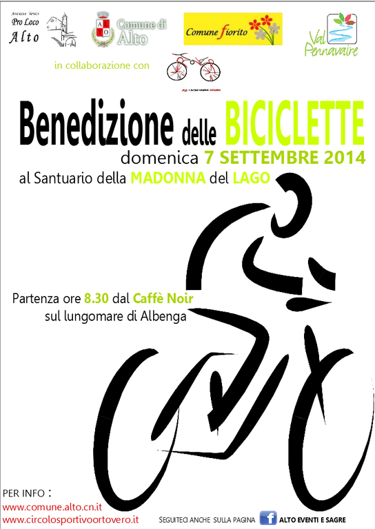 Domenica 07.09.2014 si terrà la Benedizione delle biciclette al Santuario della Madonna del Lago di Alto (CN), subito dopo la Messa delle ore 11.00 – Grazie alla collaborazione con l’ASD Circolo sportivo di Ortovero un gruppo di ciclisti partirà in bicicletta dal Caffè Noir di Albenga (SV) e salirà fino al Santuario. Aspettiamo tutti gli appassionati di bici!