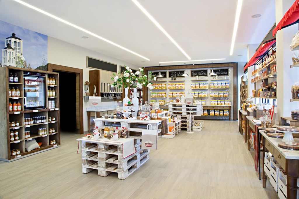 La “Bottega” offrirà anche una selezione di prodotti che completano il rito dellaprima colazione: latte, marmellate, caffè, succhi di frutta ed accessori per lapreparazione della tavola. Inoltre, per soddisfare le nuove tendenze, sarà possibileacquistare alcune materie prime utilizzate in Azienda: zucchero, farina, gocce dicioccolato, solo per citarne alcune, e utensili/stampi per la preparazione di dolci.
